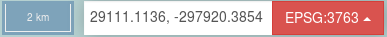 A ferramenta de mudança de sistema de coordenadas, permite ao utilizador alternar o sistema de coordenadas base do mapa principal. Ao clicar sobre o identificador do sistema de coordenadas actual do mapa, serão apresentados os sistemas coordenadas suportados pela plataforma, conforme imagem.